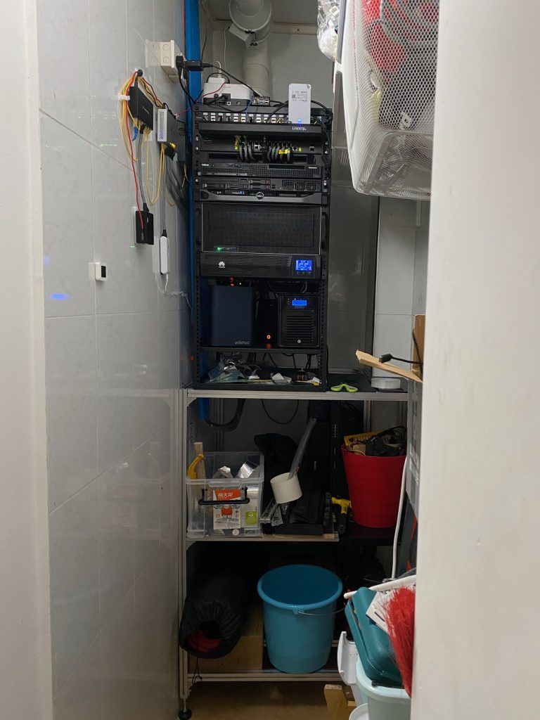家里有个狭长的空间由于结构无法改变,也就正好可以用来做储藏室以及机房使用,从海鲜市场120块淘到一个2米的42U网络机柜,又叫了货拉拉100块拉回来。hmm,也可以说是非常超值了。